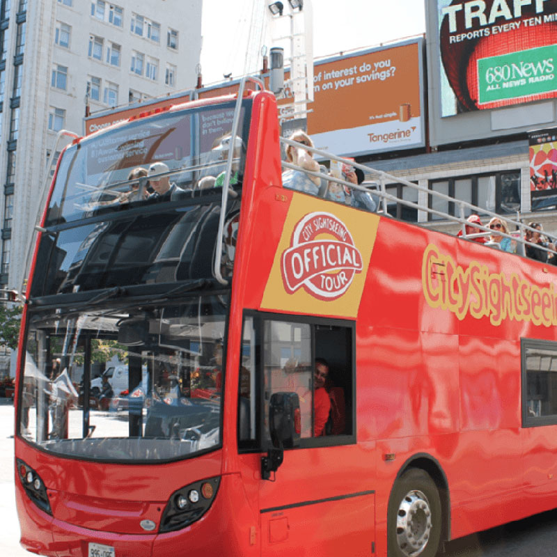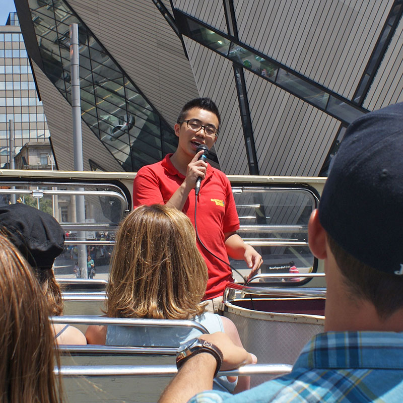 All of our buses offer a narrated tour, either with a live English-speaking guide and/or a multilingual audio system. Our tours animate the sights and attractions along the route, and our on-board team members are more than happy to give you advice on how to make the most of your stay in our wonderful city. For availability on live guides and multilingual buses, please call our office or visit our information booth at Yonge-Dundas Square. Multilingual buses offer narration in English, French, German, Spanish, Italian, Portuguese, Russian, Cantonese, and Mandarin. You can bring your own headphones to enjoy the tour, or we can provide them to you free of charge when you arrive.